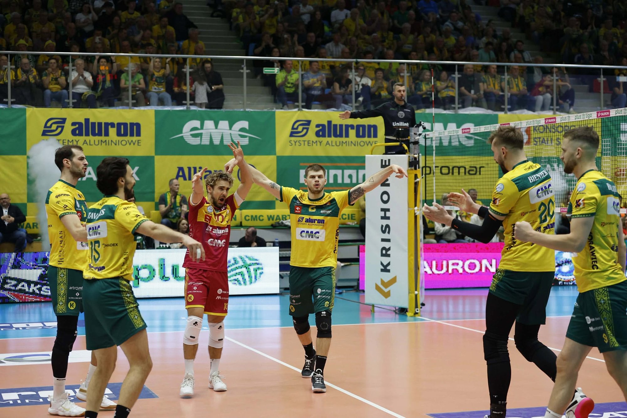Aluron CMC Warta Zawiercie: Russell (14), Kwolek (14), Tavares (4), Bieniek (15), Zniszczoł (8), Bołądź (16), Popiwczak (libero) oraz Ensing, Nowosielski, Czerwiński, Łaba (2), Markiewicz, Ogórek (libero)
